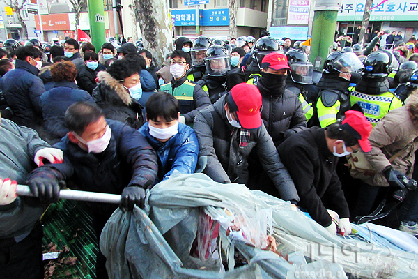 청주시 측은 이날 새벽 5시께부터 공무원과 상당구청 소속 철거 전문 직원 900여명을 동원해 시청정문 앞 청주시노인전문병원(아래 노인병원) 해고...