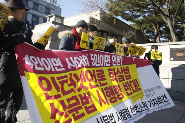 5인 미만 인터넷 신문을 강제로 퇴출하는 내용을 담은 '신문법 시행령'이 헌법재판소의 심판을 받게 됐다.