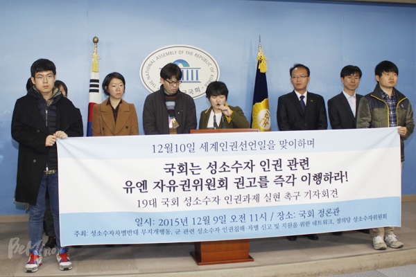 성소수자 단체들이 9일 국회 정론관에서 기자회견을 열고, 정부가 성소수자 인권 증진 책무를 다해야 한다고 촉구했다.