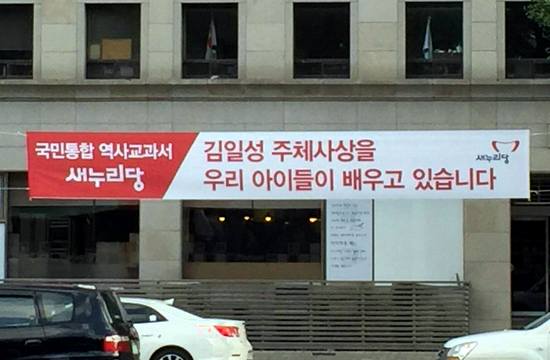 13일 새누리당이 이 같은 글귀가 적힌 대형 현수막을 거리에 내걸기 시작했다. 기존 검정교과서로 나온 고교<한국사> 교과서에 내용에 ...