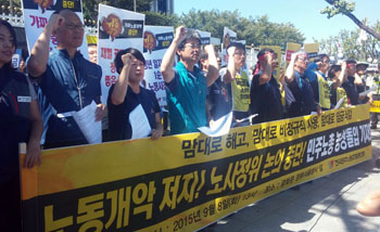전국민주노동조합총연맹(위원장 한상균, 민주노총)이 서울 정부종합청사 노사정위 앞 노숙농성에 돌입했다. 정부의 노동시장 구조개혁 관련 노사정위 야...