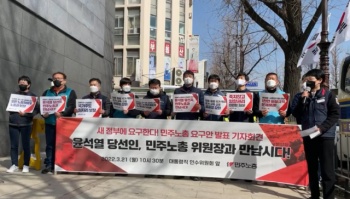 민주노총이 상반기 대규모 집회와 하반기 총파업을 통해 윤석열 대통령 당선인에 공공부문 비정규직 대책을 요구하겠다고 밝혔다. 민주노총은 22일 오...