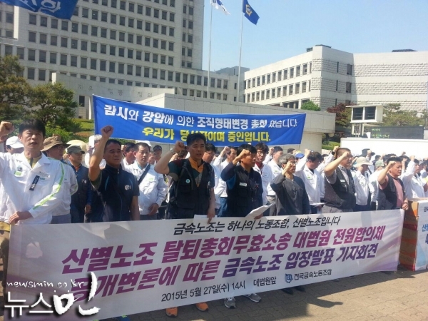 금속노조 집단탈퇴와 노조 조직형태 관련 대법원의 전원합의체 공개변론을 하루 앞두고 각 산별노조에 이어 한국노총에서도 “산별노조는 집단 탈퇴가 불...