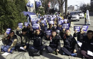 금속노조가 스타케미칼 해고자복직투쟁위원회(아래 해복투) 차광호 조합원 굴뚝농성 310일을 맞아 문제해결을 촉구하는 결의대회를 열었다.