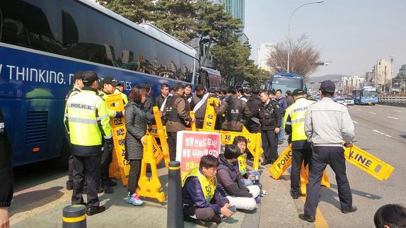 노동시장 구조개편을 위한 경제사회발전노사정위원회(노사정위) 논의 시한인 31일. 노사정위가 위치한 서울 광화문 정부종합청사 앞은 노사정 야합을 ...