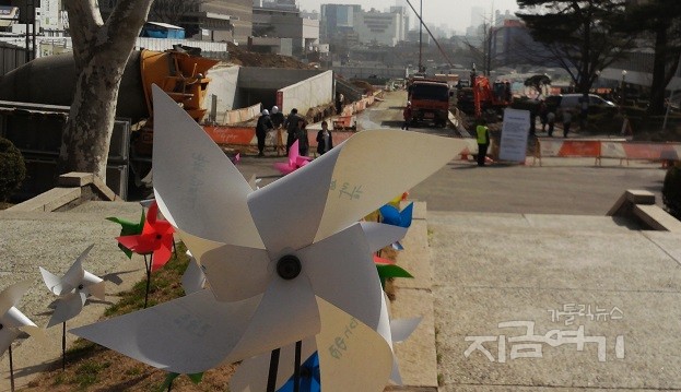 연세대 신촌캠퍼스 안 언더우드 동상 근처에 두 달 넘게 천막이 세워져 있다.