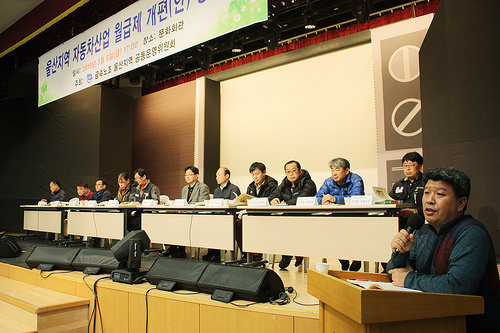 전국금속노동조합 울산지역공동운영위원회는 6일 북구 양정동 현대자동차 문화회관에서 울산지역 자동차산업 월급제 개편(안) 공청회를 열었다.