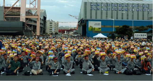 현대중공업 노사가 11일 73차 교섭에서 2차 잠정합의안을 이끌어 낸 가운데 12일 울산지법에서 열린 통상임금 1심 판결에서도 승소했다.