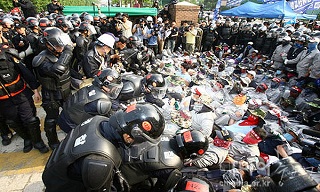 19일 오후, 강남대로에 용역반 130여 명이 또 다시 들이닥쳤다. 관광버스 두 대에 나누어 탄 용역반들은 두 팀으로 나누어 강남대로 양 옆에서...