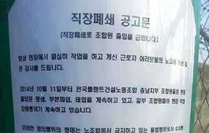 충남 당진.태안화력발전소에서 근무하는 전국플랜트노조 조합원들이 10일부터 11일까지 이어진 일부 전문건설업체의 직장폐쇄에 반발했다.
