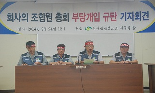 현대중공업의 노조 활동 개입이 갈수록 정도를 더하고 있다. 현대중공업 노조는 24일 긴급 기자회견을 열고, 현대중공업 관리자들의 노조활동 방해로...