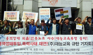 지난달 말, 재능교육(주) 본사 앞 노동자들과 용역 직원들의 충돌이 또 다시 반복되면서, 용역 폭력 피해 사업장들이 공동대응에 나섰다. 재능교육...