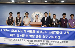 우원식 새정치연합 최고위원은 “LG유플러스와 SK브로드밴드 협력업체가 비정규직 노조 조합원만 선별해 고용승계를 하지 않고 있다”며 “우리는 이미...