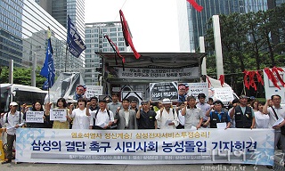 삼성바로잡기운동본부, 시민사회단체, 종교계 등 대표단이 전국금속노조 삼성전자서비스지회의 파업에 연대하고 삼성의 전향적인 결단을 촉구하기 위해 2...