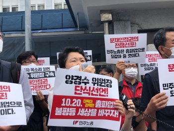 경찰이 민주노총 사무실을 급습해 양경수 민주노총 위원장을 구속했다. 민주노총은 “문재인 정권의 전쟁선포”라며 “예정된 10월 20일 총파업으로 ...