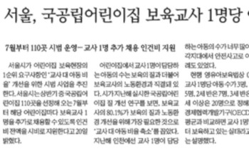 [1단 기사로 본 세상] 보육교사 1인당 아동 수 줄이기 시급하지 않아