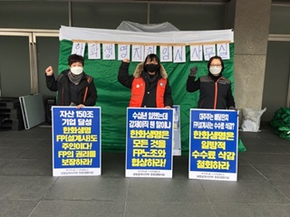한화생명 보험설계사(FP)들이 투쟁에 나섰다. 보험설계사지부 한화생명지회는 지난 1월 21일 설립됐다. 하루 최대 450명이 노조에 가입하는 등...