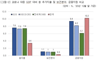 한국의 코로나19 재정지출이 다른 국가보다 낮은 수준이지만, 금융지원은 높은 수준이라는 지적이 나오고 있다. 코로나19 시기 최일선에 있는 보건...