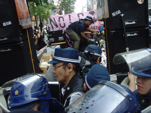 일본 전역의 경찰들이 모두 홋카이도로 모였다고 합니다. 우리의 행진을 막아서고 있는 경찰들 역시 멀리 오사카에서 온 경찰들입니다. 우리들은 오사...