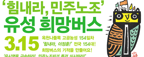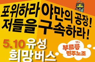 다시 5월 10일 2차 유성희망버스가 출발한다. 우리 모두 다시 5월 10일 희망버스를 타자! 그래야 다시 세운 민주노조를 지킬 수 있다. 우리...