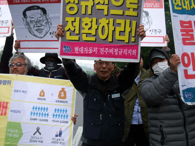 현대차 비정규직 노동자들을 응원하는 목소리가 커져가고 있습니다. 900만 비정규직 노동자들의 정규직 전환에 대한 희망을 만들어가는 싸움이기 때문...
