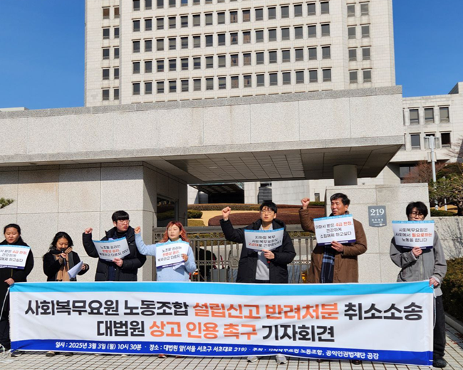 2025년 3월 3일 사회복무노조 설립신고 반려처분 취소소송 대법원 상고 인용 촉구 기자회견