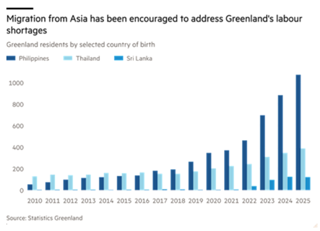 그린란드는 노동력 부족을 해소하기 위해 아시아로부터의 이주를 장려했다
