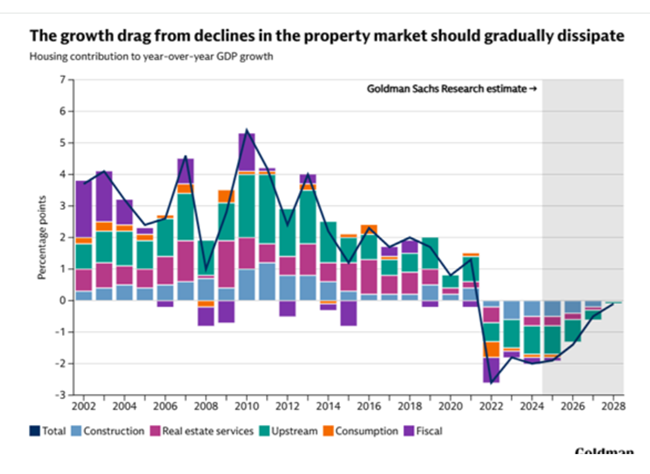 <부동산 시장 하락이 성장에 미치는 부담은 점차 사라질 것으로 보인다주택 부문이 전년 대비 GDP 성장에 기여한 정도>