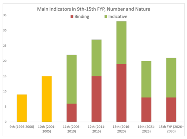 목표 설정에서 제15차 국가 계획은 막 끝난 제14차 계획을 밀접하게 이어받는다그리고 이것은 단순한 지침이나 희망 사항이 아니라 실제 계획이다많은 목표들이 의무적이거나 구속력이 있는 것으로 간주되며따라서 반드시 실행되어야 한다.