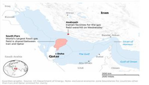 아살루예(Assaluyeh): 수요일 가스전 관련 이란 시설이 타격을 입었다 /사우스 파르스(South Pars): 세계 최대 가스전으로 이란과 카타르가 공유한다