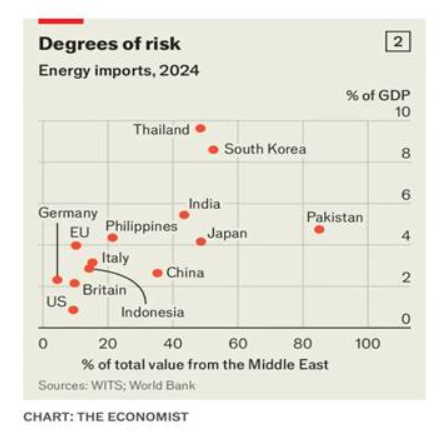 전 세계 석유 공급은 3월에 하루 800만 배럴 감소할 것으로 보이며중동의 감산 일부는 연초 차질 이후 카자흐스탄과 러시아 등 비OPEC+ 국가의 증산으로 일부 상쇄한다에너지 수입 감소와 가격 상승은 국가별로 영향을 다르게 미치는데특히 아시아가 가장 큰 타격을 받고 그다음이 유럽이며적어도 에너지 측면에서는 미국 경제가 상대적으로 가장 덜 영향을 받는다.