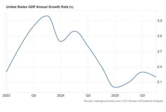 경제성장 측면에서도 2025년 4분기 미국 실질 국내총생산(GDP) 성장률 2차 추정치는 전기 대비 연이율 0.7%로 크게 하향 조정돼 속보치 1.4%를 크게 밑돌았다이번 추정치는 수출소비정부지출투자 등 GDP의 모든 구성 항목이 하향 조정된 결과다. 2025년 미국 실질 GDP 성장률은 2%로 추정되며 2024년 2.4%, 2023년 3.4%보다 낮아졌다. 2025년 1인당 실질소득은 1.1% 증가하는 데 그쳤고해당 연도 마지막 분기에는 감소했다.
