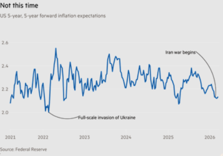 주류 경제학자들은 인플레이션의 주요 원인을 기대 인플레이션’ 상승으로 보지만이 블로그는 이러한 행동주의적 이론을 여러 차례 반박했다. 5년 후 5년 기대 인플레이션은 지난 5년간 큰 변동이 없었다팬데믹 이후 시기 인플레이션 상승의 주요 원인은 공급 측 요인이었으며이번에도 마찬가지일 것이다.