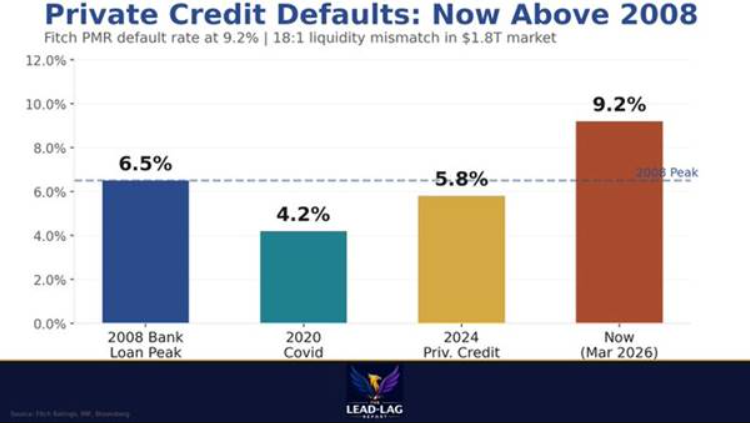 프라이빗 크레딧 부도이제 2008년 수준을 상회피치(PMR) 기준 부도율 9.2% | 1.8조 달러 시장에서 18:1 유동성 불일치